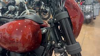 The tank features an FXLRS badge cover and a dropped “H” logo, first seen on early H-D race bikes.
